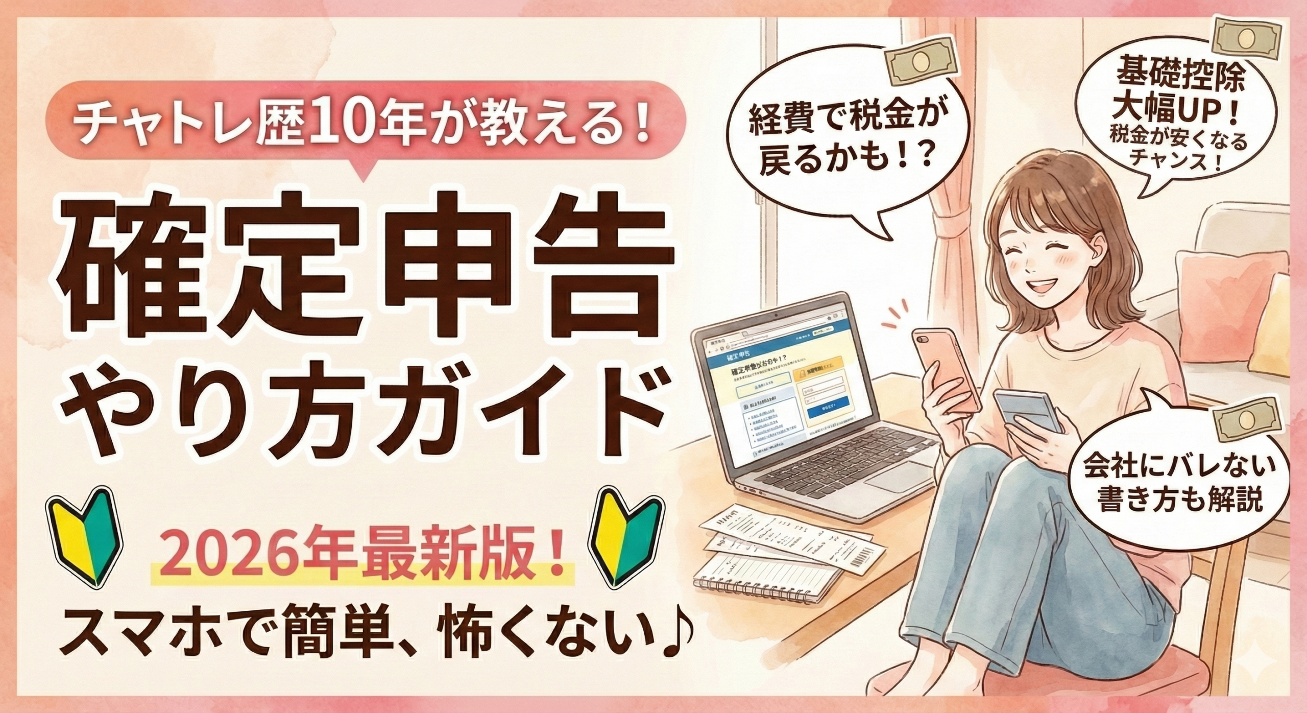 この記事では、チャトレ歴10年の私が、確定申告の基本から経費のことまでわかりやすく解説します。2025年の税制改正で控除額が増えたので、最新情報もしっかりお伝えするね!